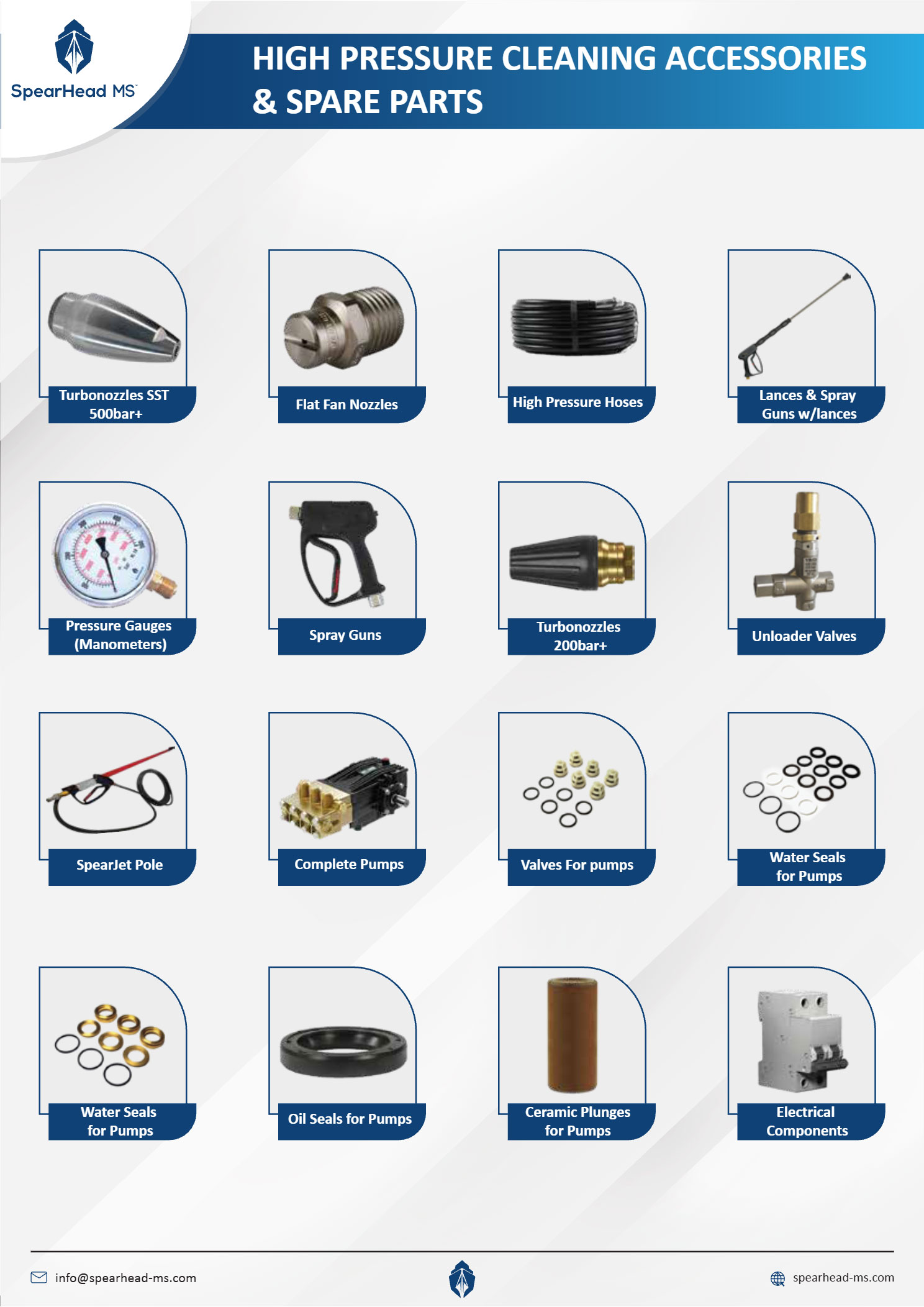 SpearHead MS offers a comprehensive range of high-pressure cleaning accessories and spare parts, designed to ensure optimal performance, durability, and reliability of high-pressure systems in marine and industrial applications.